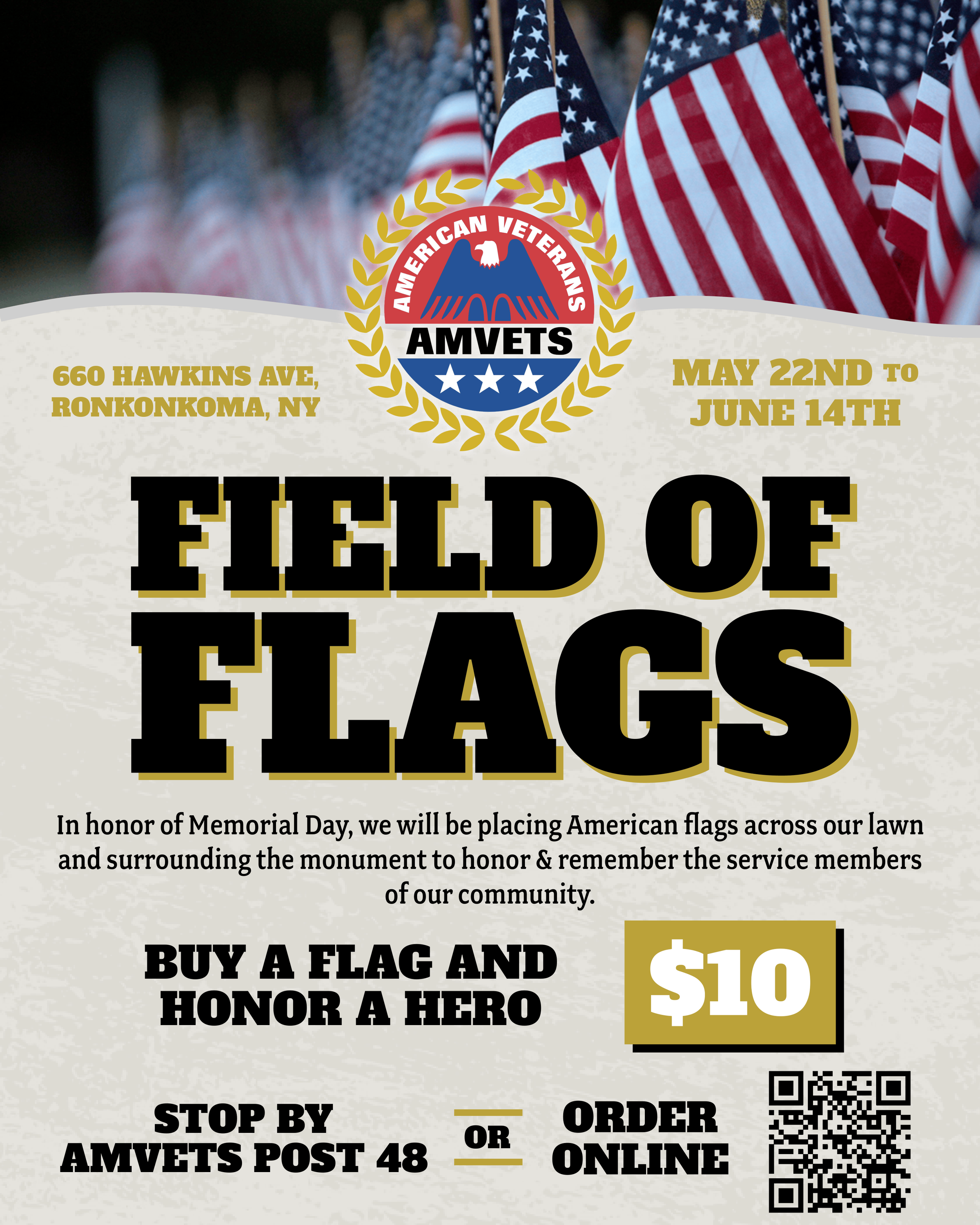 For your $10 donation, a personalized 12×18 stick flag will be included in our field of flags through Flag Day on June 14th, 2026